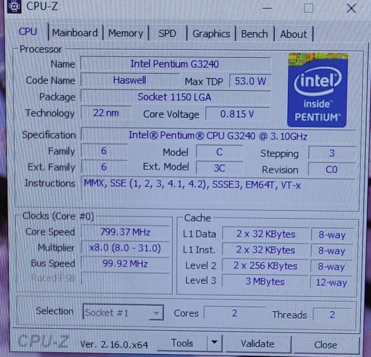 پردازنده (CPU): Intel Pentium G3240 – مناسب کارهای روزمره، آفیس، وبگردی و نرمافزارهای سبک